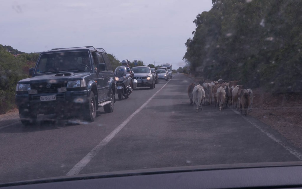 Ik had gelezen in het ANWB boekje over Bari Sardo en Torre di Bari. Beide plaatsen op zo’n 15 km van de camping. Dus in de auto en allereerst naar Torre di Bari. De route verloop vrijwel geheel langs de kust met zo nu een dan een B-weg het ‘binnenland’ in. Langs de kust vooral strand, met strandtenten en veel mensen aan het zonnen enzo. Het binnenland, smalle wegen met mooie vergezichten. Echter niet echt de ruimte om even te parkeren.