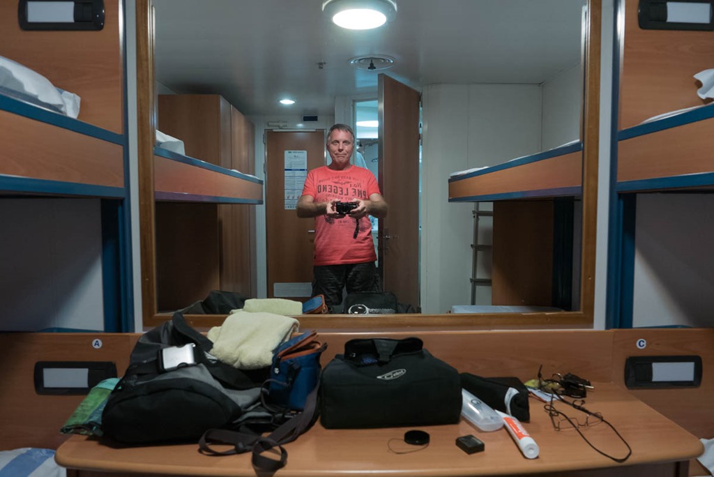 dus foto maken. Terug naar de hut, uhhhh, waar is m’n keycard??? Niet in m’n zak, overal gevoeld, zoeken, aan dek, varend met een gangetje van zo’n 30 km/h, staat een frisse bries.. conclusie, bij het pakken van mijn foon is de keycard uit m’n zak gevallen en woehhh, weg…